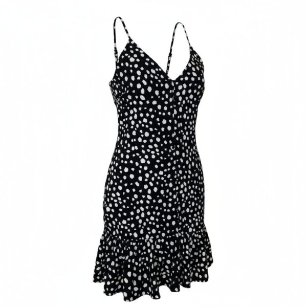 Casual – Black mini dress with a white polka dot pattern and delicate straps. Light and feminine for warm days.